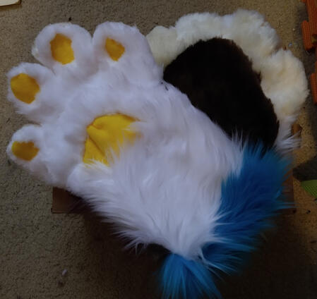 Complex patterns will cost more depending on how much detail there is. Horns, non-basic teeth, feathers, and anything other than the basic fursuit head/paws/tail/etc. may cost more.